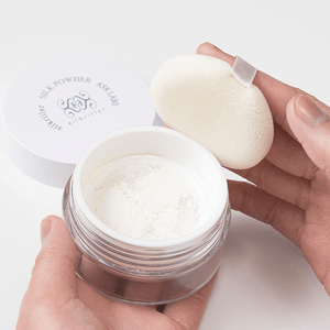 ★シルクパウダーは1度に多く付けてしまうと白浮きしてしまう為、お使いいただく様は、付属のパフにお粉を付けた後、軽くパフを折り畳みパフ全体にシルクのお粉を馴染ませて、余分なお粉を落とした後、お肌にお使いいただくと綺麗に仕上ります。